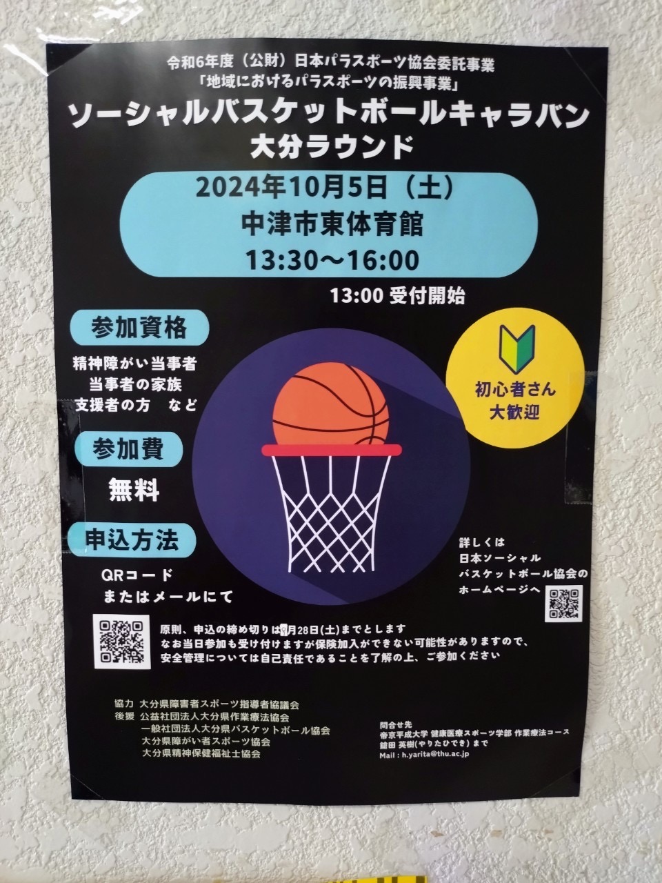 大分県でソーシャルバスケットボールキャラバンが開催される予定です